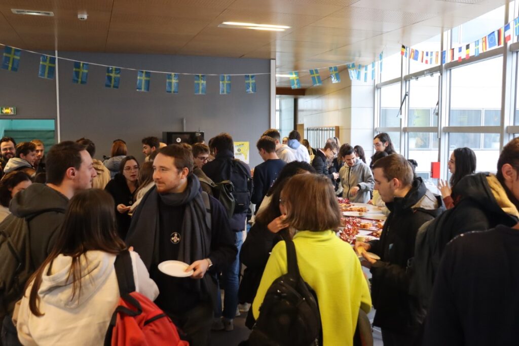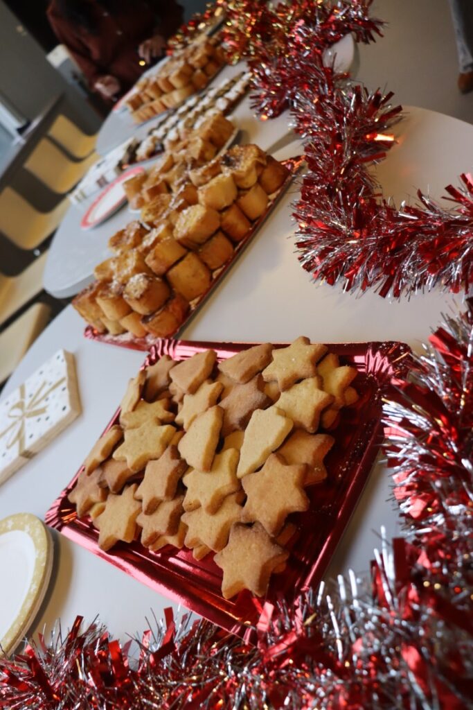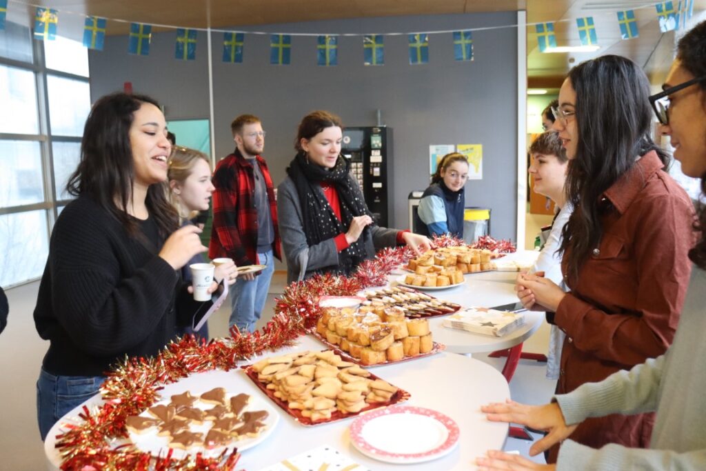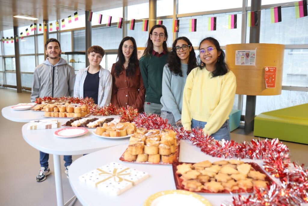 Le vendredi 15 décembre, les élèves de 3e année du Projet de développement école “Interculturalité“, tutorés par Sébastien Testu, enseignant, et Héloïse Patela, coordinatrice des relations internationales, ont organisé une pause conviviale avec les étudiants et les personnels autour de la dégustation de gâteaux savourés traditionnellement dans les pays de nos universités partenaires en cette fin d’année.