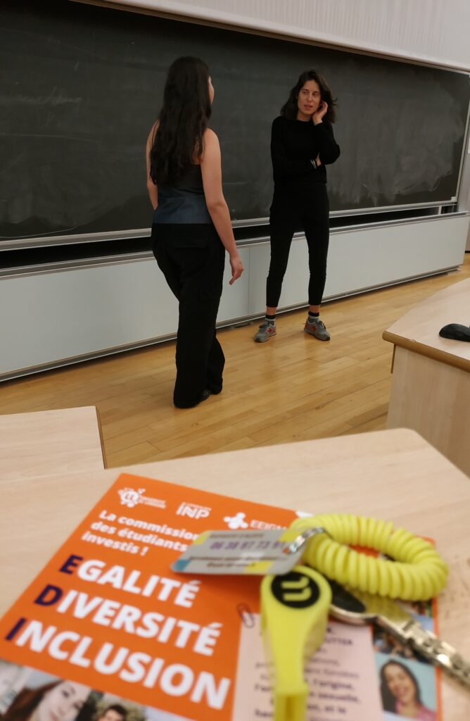 L’animation s’est clôturée par l’intervention d’Isaac Tchara, chargé de projets EDI à l’Université de Lorraine et par celle de Françoise Bronkart, référente EDI à l’EEIGM afin de présenter aux élèves les dispositifs mis en place à l’école et à l’Université pour les aider si ils/elles sont victimes ou témoins de discrimination et/ou de violences.