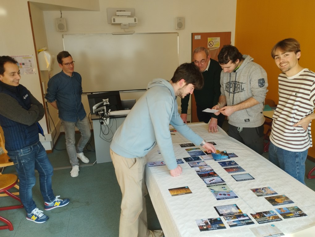 Des membres de la commission Développement Durable et Responsabilité Sociétale (DDRS) ont participé à cet atelier ludique le jeudi 7 mars pour mieux appréhender les enjeux et problématiques liés au changement climatique. Cette activité et le débat qui la suivait se veulent être des premières étapes de réflexions pour guider la stratégie de l’établissement. Ces activités seront proposées plus largement à l’ensemble de la communauté. L’atelier était animé par Rémi Demol, maître de conférences et référent DDRS de l’EEIGM. Il effectue ses recherche, notamment en analyse de cycle de vie (ACV), au sein du Laboratoire Réactions et Génie des Procédés.