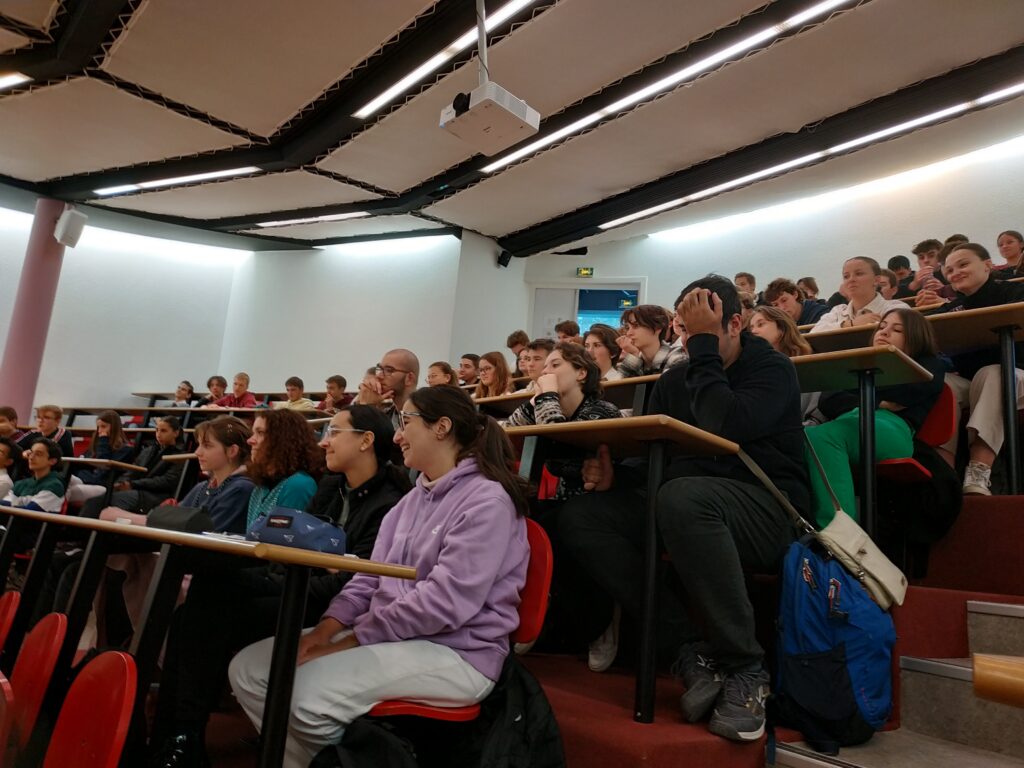 Ce jeudi 22 septembre 2022, la compagnie parisienne Synergies Théâtre est intervenue auprès de l’ensemble des étudiant(e)s de 1ère année par le biais d’un théâtre forum. Après avoir joué une première fois le spectacle mettant en scène le personnage de Sarah, étudiante, et les situations auxquelles elle est confrontée au quotidien, les comédiens le rejouent mais en donnant cette fois la parole aux élèves et en leur permettant de monter sur scène pour remplacer l’un des personnages.